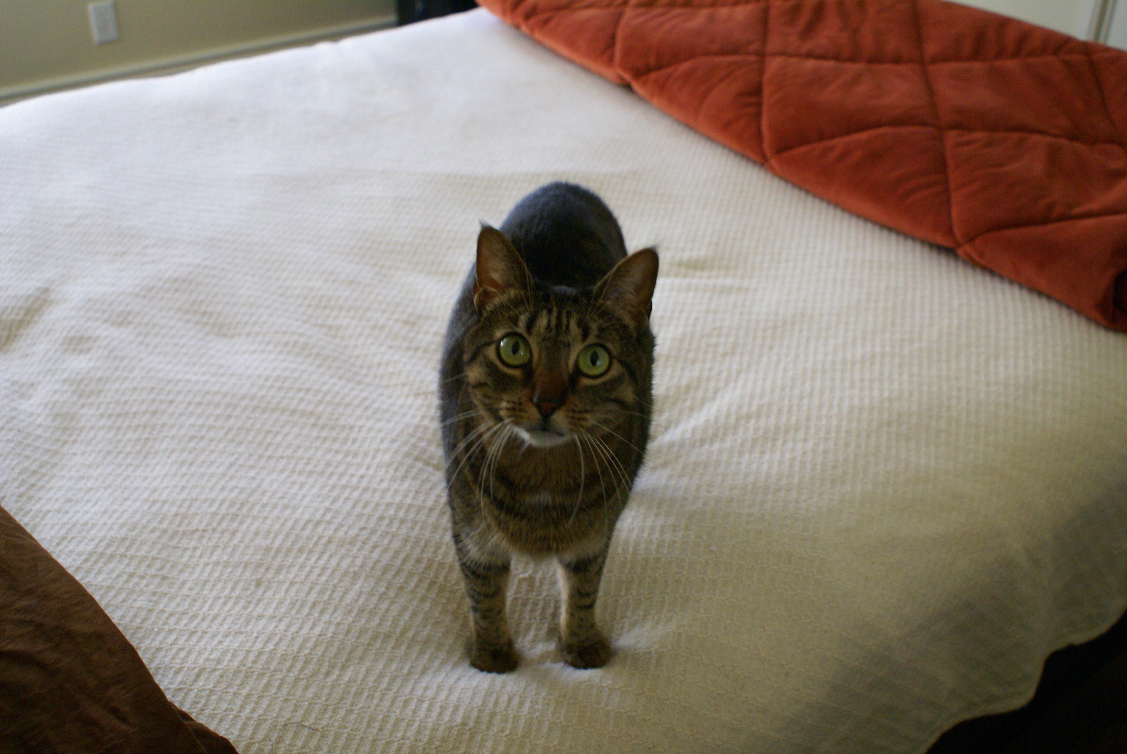 I met Isabel in the Fall of 2007. It’s a long and intricate story, but let it suffice to say that my beloved cat Matthew had just passed on in May of that year, and I was devastated. He disappeared (and after several months, was presumed dead) after over six years of successful cohabitation, and his absence left a gaping wound in my already fragile heart region. He had been with me through everything. I found him in a Walmart parking lot in the summer before my junior year of college, and his generally piss-poor attitude had helped me weather many a tough situation, including when we evacuated New Orleans together for four months in the wake of Hurricane Katrina. He was a tough little bastard who shat in my laundry pile, yowled for food/open doors/whatever-the-hell-else-he-wanted, and put me to sleep every night by pressing his damp nose under my right ear and purring me into oblivion. I would often awake to find him sleeping beside me, paw slid into my outstretched hand. He was what we Southerners call ‘honery’, but infinitely lovable all the same.