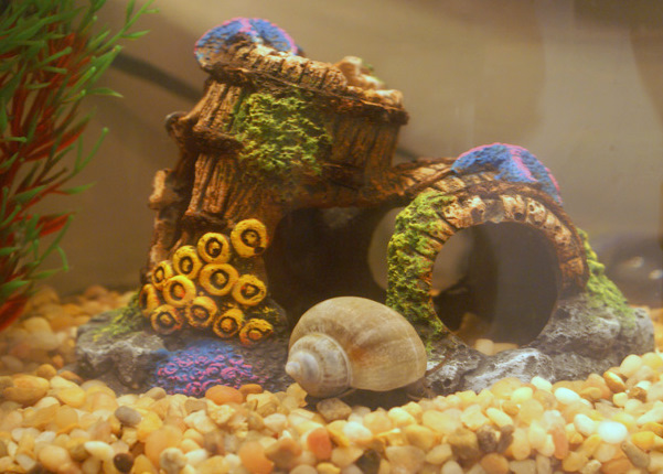 Bottom line is to make sure you’ve got a tank that’s big enough for all of the fish you’re keeping, and then keep an eye out for aggression. Since bettas live at the top of the tank, fish that live at the middle or bottom of the tank should be OK most of the time, but just like any other animal, you’re going to have to account for personality. I bought Simon’s first friend yesterday – a blue mystery snail named Morris. Simon nipped at Morris’ antennae a few times, and then realized he wasn’t interested and gave up. Now they’re living together quite happily. Simon has even become a bit more animated since Morris moved in, and spends time watching him and just hanging out beside him. I kind of wonder if they’re shooting the shit with each other. And while we’re speaking of shit, something I didn’t know when I bought a snail is though they are great for eating algae in the tank, they also poo a LOT. So now my tank is a little cloudy, which will hopefully not be such an issue when I move them up to a larger home soon.