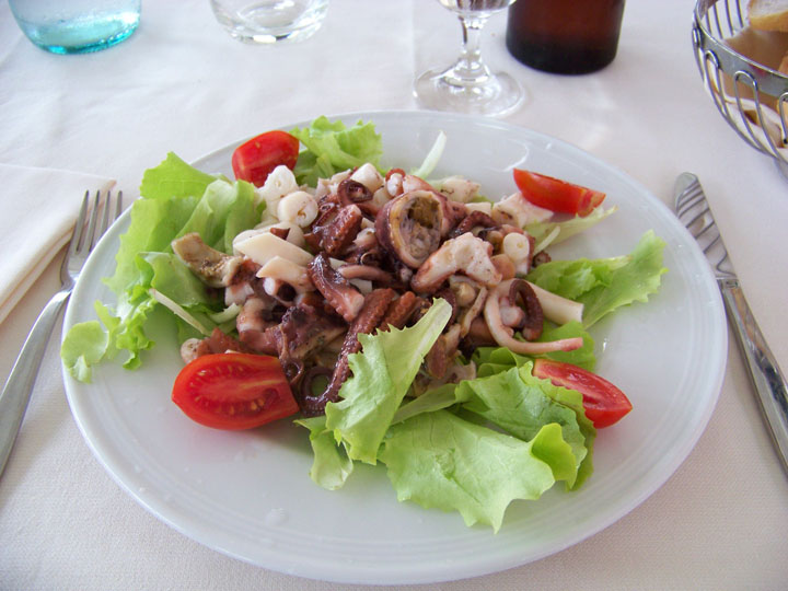 The octopus was wonderful, no seasonings to overpower the flavor of the meat. I was surprised at how succulent it was, and ate every last tentacle. As for the pasta, I don’t recall ever having so simple a dish that I enjoyed so much. The sauce was clam juice, white wine, a little olive oil, and basil. I couldn’t taste any other herbs, and there was no garlic, or if there was they did something magical to it since I didn’t get sick (I’m allergic).