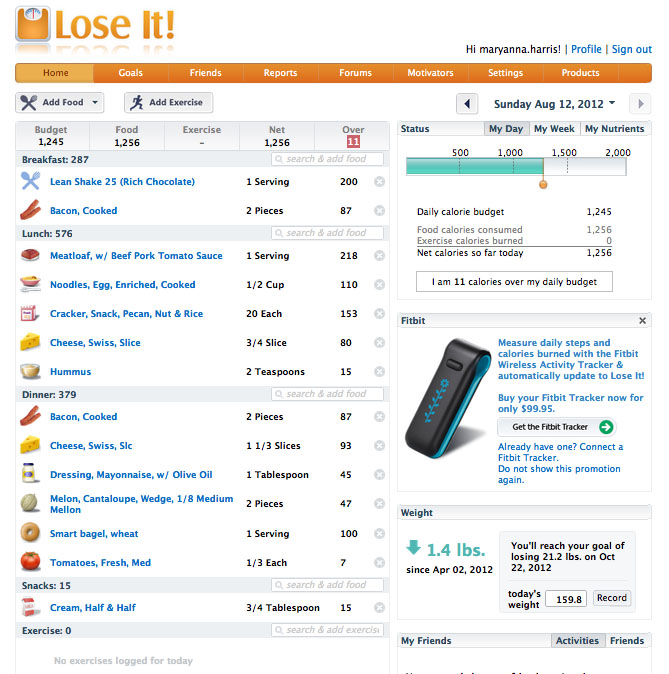 I’m going to be spending the rest of the evening watching scary movies, so here’s my LoseIt tally for the day. Not too shabby. Would have been better with some exercise, but I’ll take a good day with The Man over a great day on the diet…