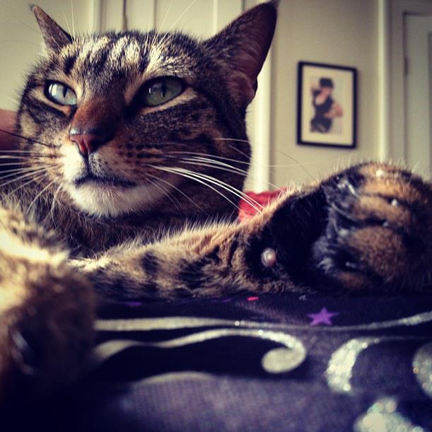 She lets me know when she’s tired of me by jumping off of the bed and going to get a little bite to eat at her food dish. After that, a long nap on the couch, maybe followed by some rough housing with her brother. Nighttimes are spent sleeping on or near me, and if I’m lucky, my morning will start off with a sleepy, sweet Izzy all over again. If I’m lucky. Otherwise, it’s bitchy, complain-y Izzy – but really I adore her just as much.