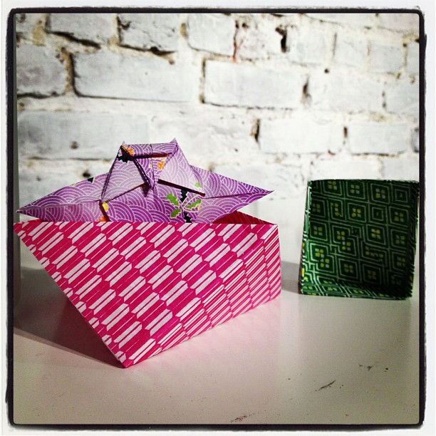 Also, I learned that there IS a use for an origami triangle box (completed a few days before the 30 Days Project began) – hot tub for an origami owl!