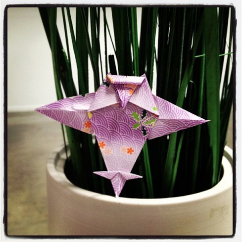 Hmmm. This one wasn’t hard, exactly – just confusing. That’s probably because I started out reading the instructions here, then supplemented in difficult parts with a video on making an origami owl. Both sources were great, but overall the video was a little more helpful for a newbie like me, and had I continued watching until the end, the ears wouldn’t be almost non-existent.