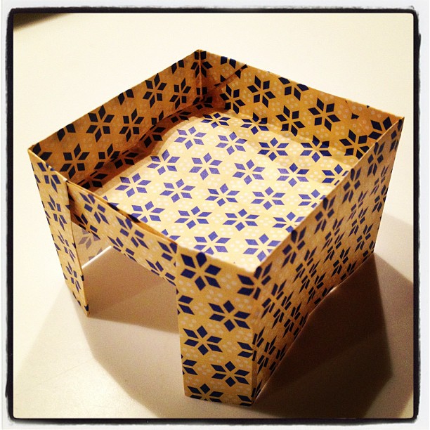 This project also came from Tomoko Fuse’s book “Joyful Origami Boxes.” It’s OK, but not great – I should have made it out of a much sturdier paper. It stands just fine, and is a pretty neat little tray overall, but I don’t like how the legs fold out just a little. It’s just not my favorite creation.