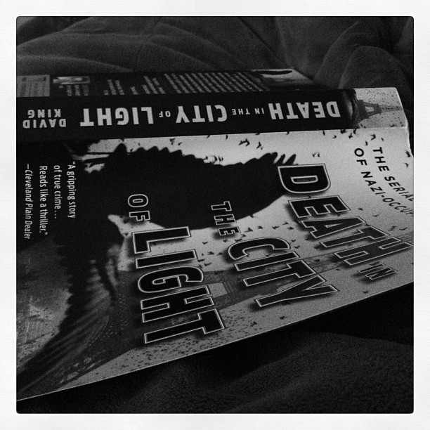 I spent some quality time on Thursday reading a great new book, “Death In The City Of Light” and hanging out with Murphy, who has needed much more love since The Man went away on assignment.