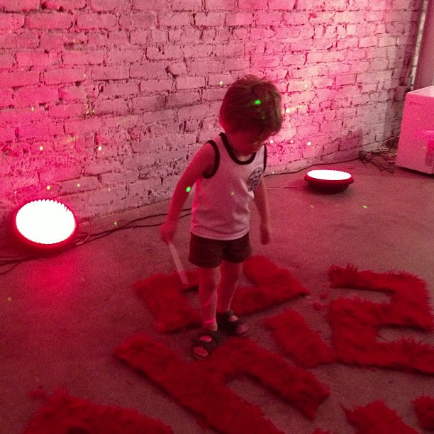 Happily, I came up with the idea for what turned out to be a pretty cool art exhibit. I contacted several local arts collaborations – artist teams – and asked them to design an installation based on a place. The place could be large, small, imaginary, spiritual, elemental, physical, but it had to fit inside a 20′ x 20′ square and focus primarily on one color chosen from the Pantone Fall 2013 collection. Around 1,000 people experienced the event, getting the artists and our gallery some great publicity. I’m pretty happy, overall. Here are some snapshots from that night.