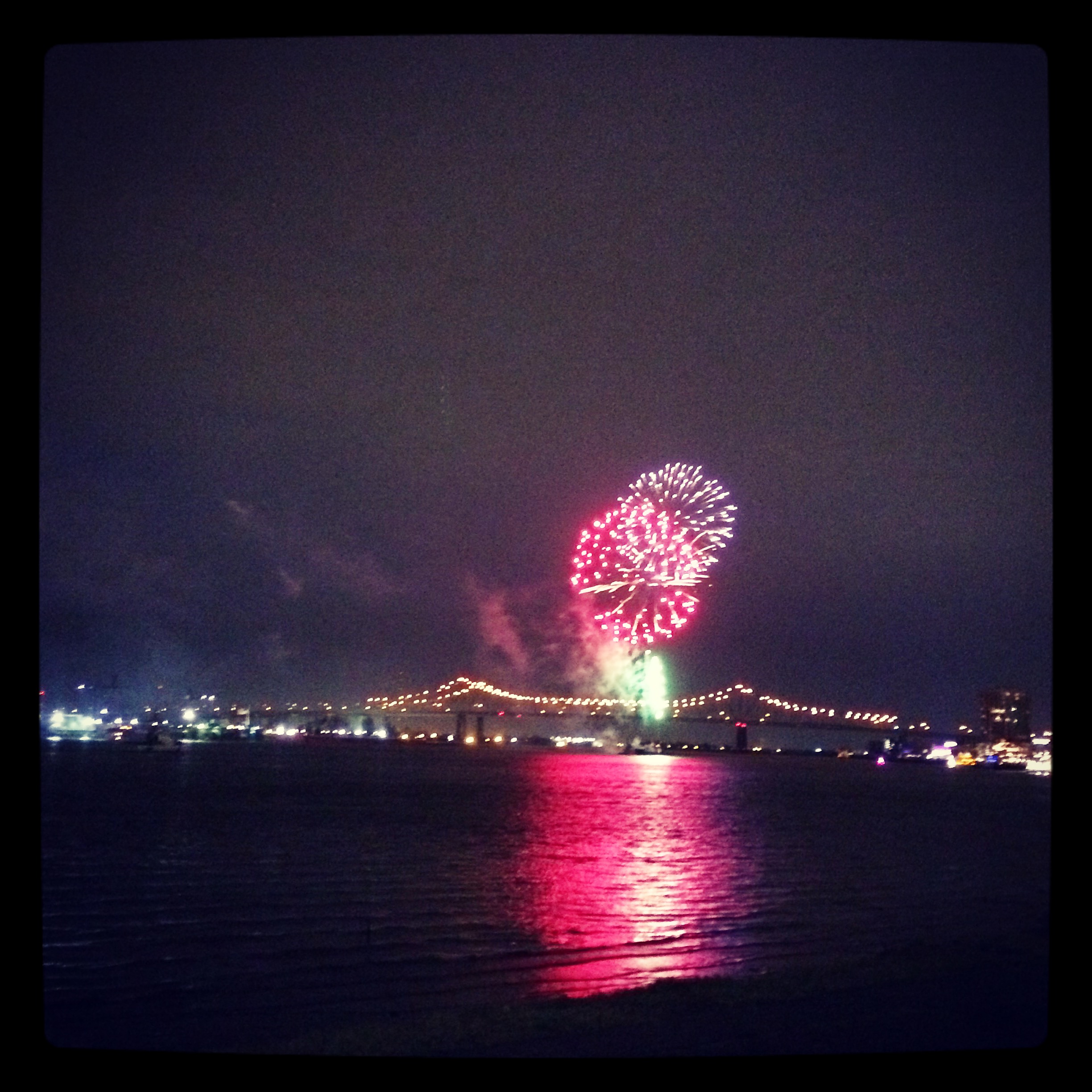 This shot was taken on Lundi Gras night (the night before Mardi Gras/Fat Tuesday), down by the Mississippi River. I was with friends, just hanging out, and we didn’t know that there were going to be fireworks. This was a great reward for me because I really hadn’t felt like leaving my house that day, despite (or maybe because of) the celebration that was going on. I adore fireworks, so getting to see them was like a little “thank you” from the Universe for just pushing myself to lighten up a bit and go have fun.